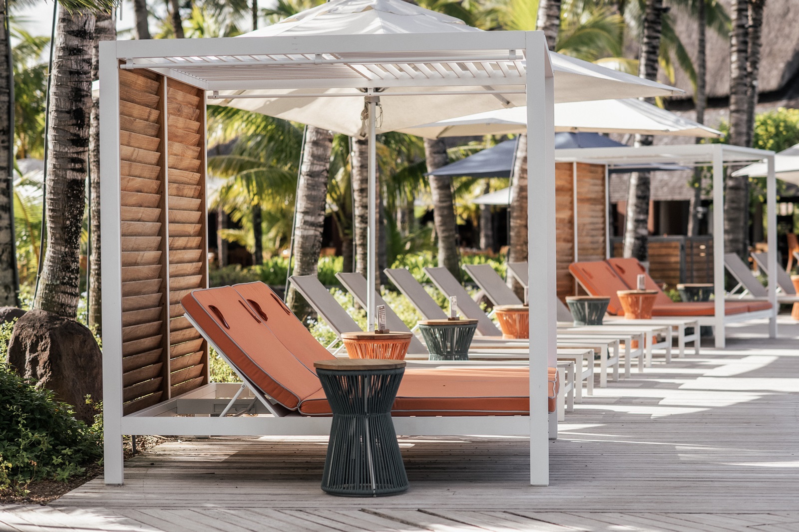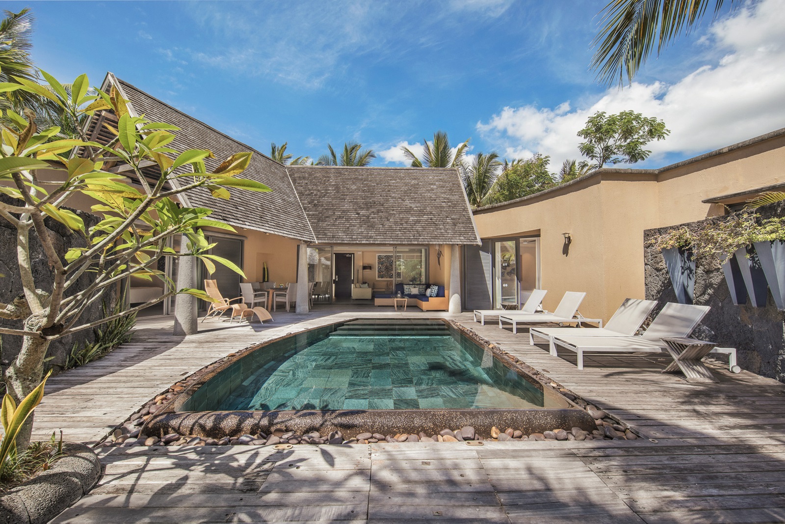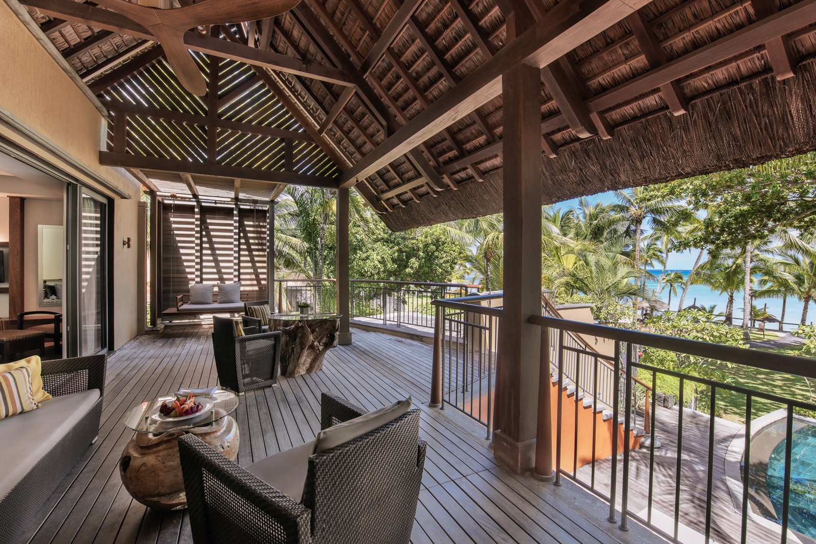 senior beachfront pool suite (163 m²), sur 2 niveaux, avec salon, terrasse très spacieuse avec escalier descendant à la piscine en contrebas et la plage