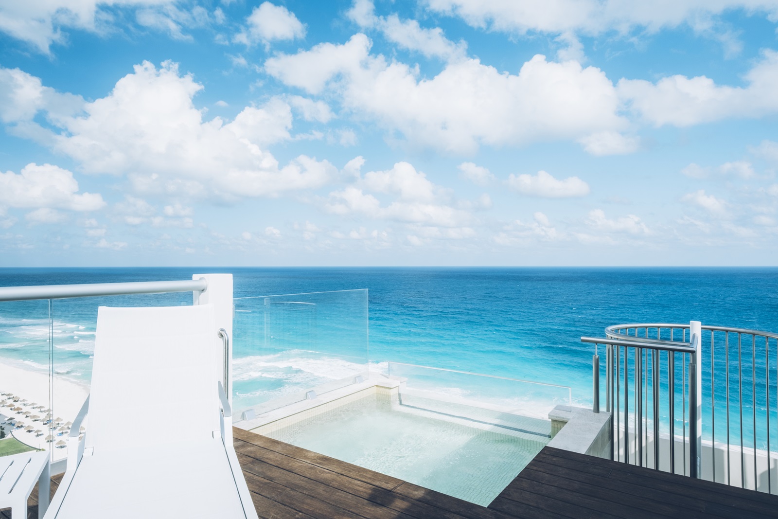 suites junior ocean front corner (103 m²) situées près de la mer sur un coin, avec grande terrasse avec bain bouillonnant