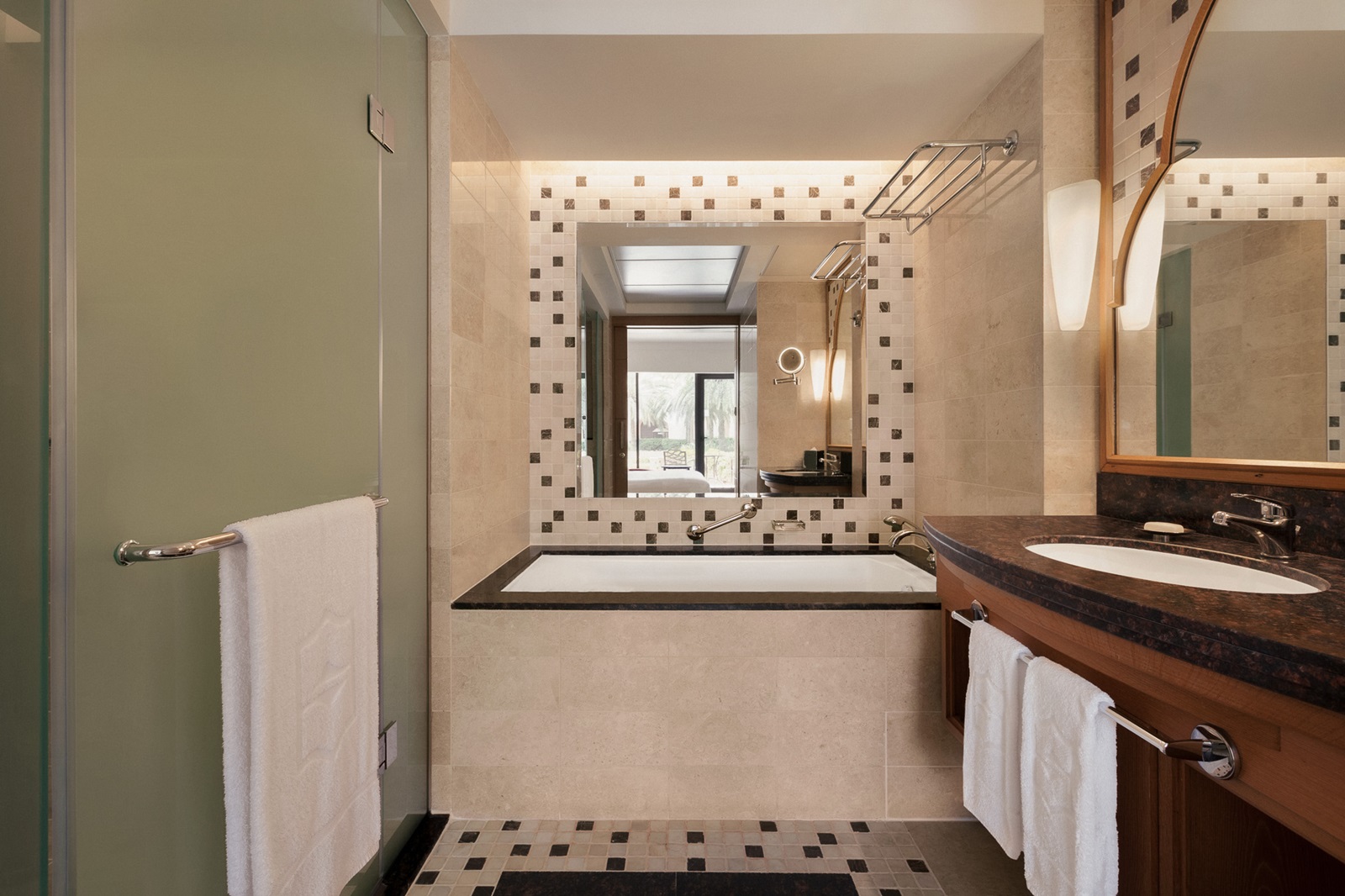 accès aux restaurants et bars de la partie Al Waha : 'Bait Al Bahr' (restaurant à la carte, fruits de mer), 'Samba' (fusion internationale, buffet et à la carte), 'Assira Pool Bar' (repas légers et snacks)