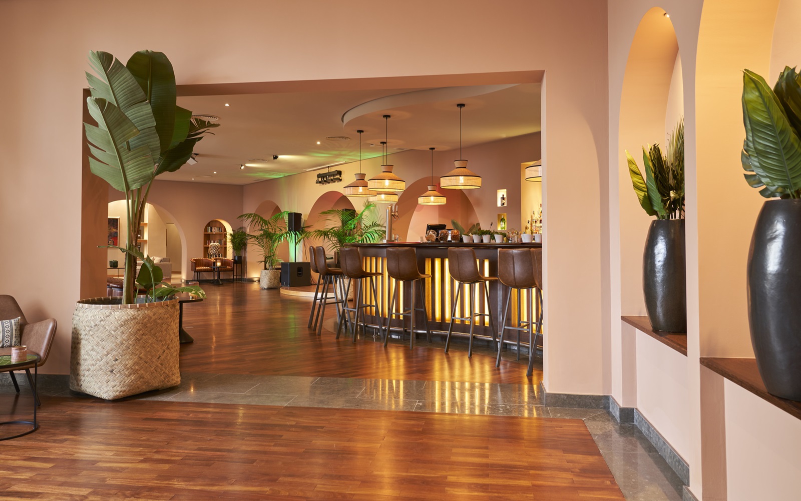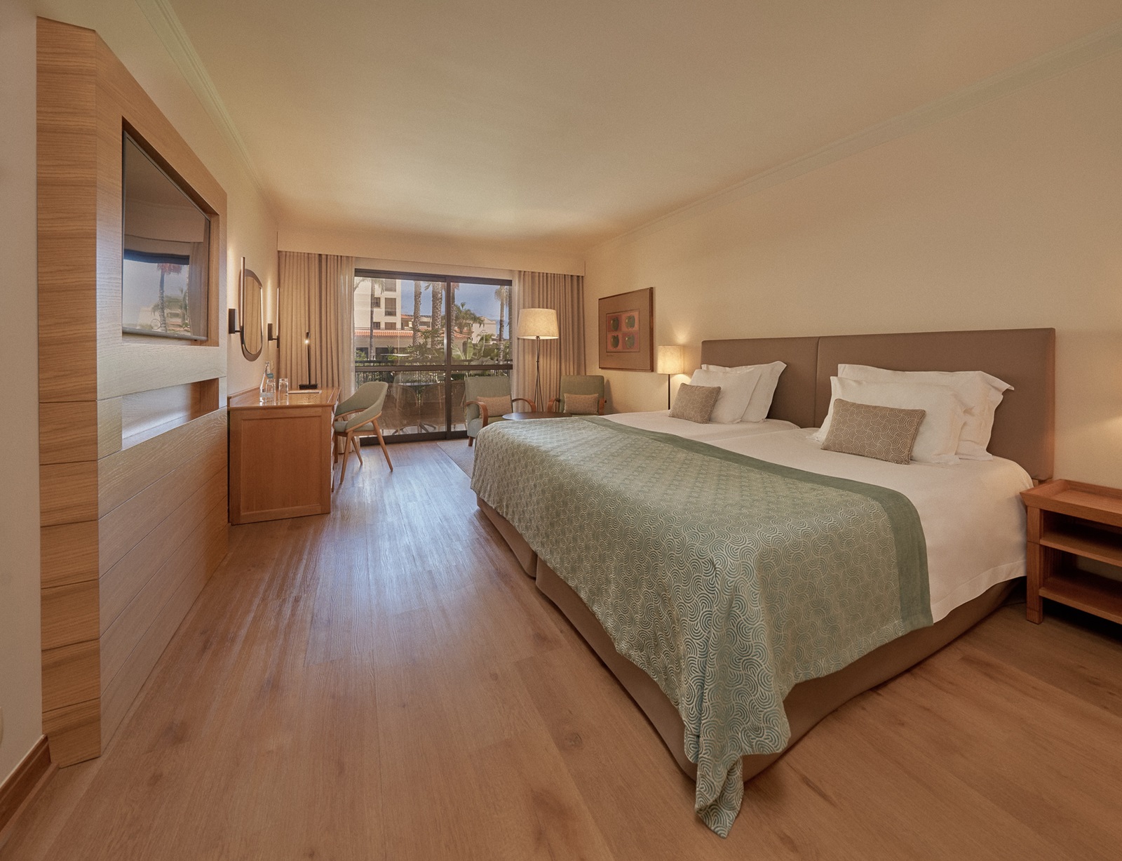 Ayant pénétré dans le hall de réception en marbre, vous vous dirigez vers la terrasse panoramique et découvrez tout de suite le concept des lieux : élégance, espace et vue omniprésente sur l’océan Atlantique. Vous trouverez toujours un petit coin tranquille où oublier complètement l’agitation de votre vie quotidienne. Les bâtiments sont adjacents à la piscine, elle-même entourée de solariums, au beau milieu d’une végétation africaine exotique avec un jardin de luxe de 13.000 m² et plus de 500 espèces de fleurs différentes.. Les 198 chambres sont aménagées dans un style contemporain classique, avec des teintes douces et du bois de pin clair. L'hôtel fait partie de PortoBay Hotels & Resorts.