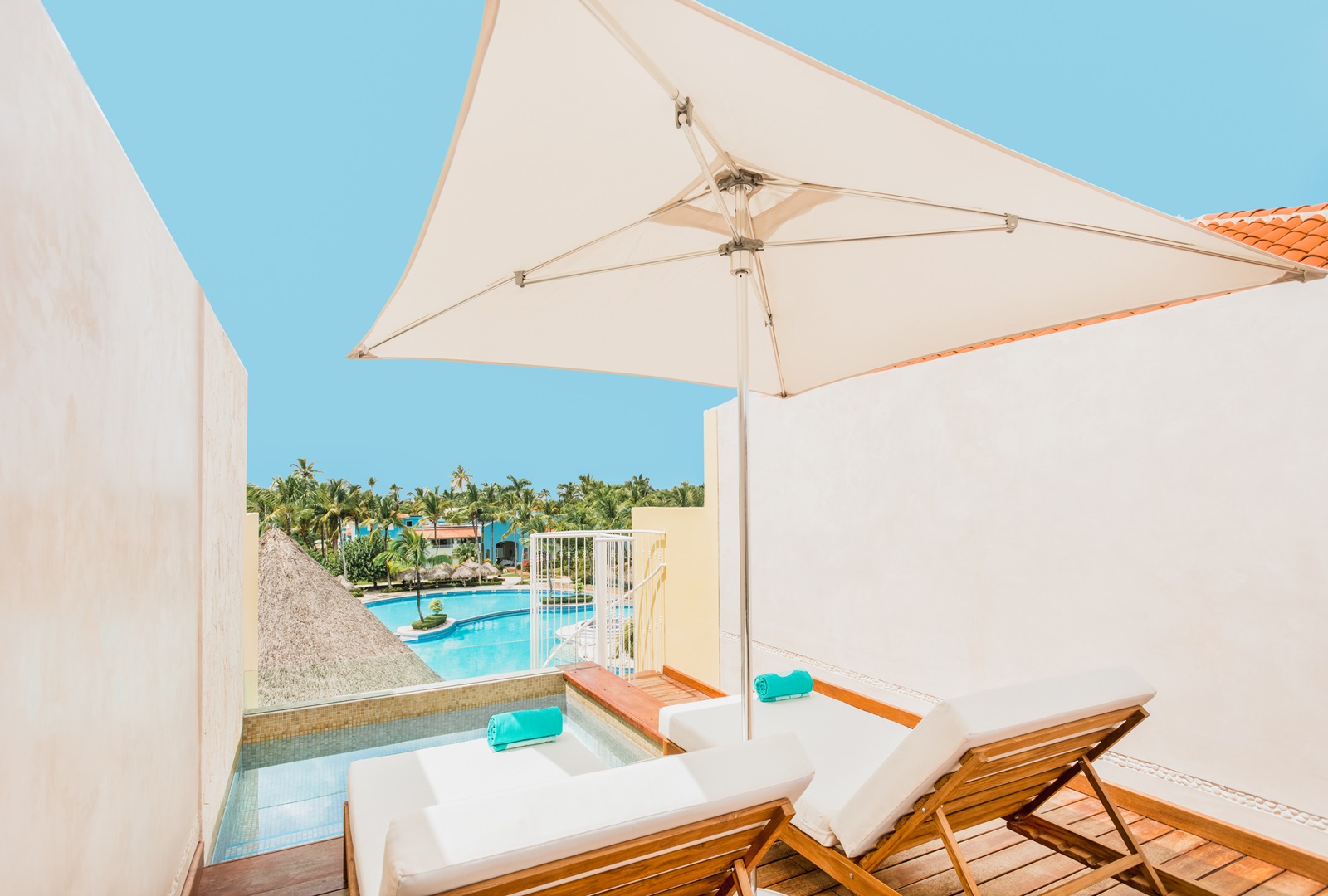 rooftop suites private pool (82 m²) (18+, sur demande) situées au dernier étage avec séjour/chambre à coucher spacieux, terrasse avec chaises longues, piscine privée et vue piscine