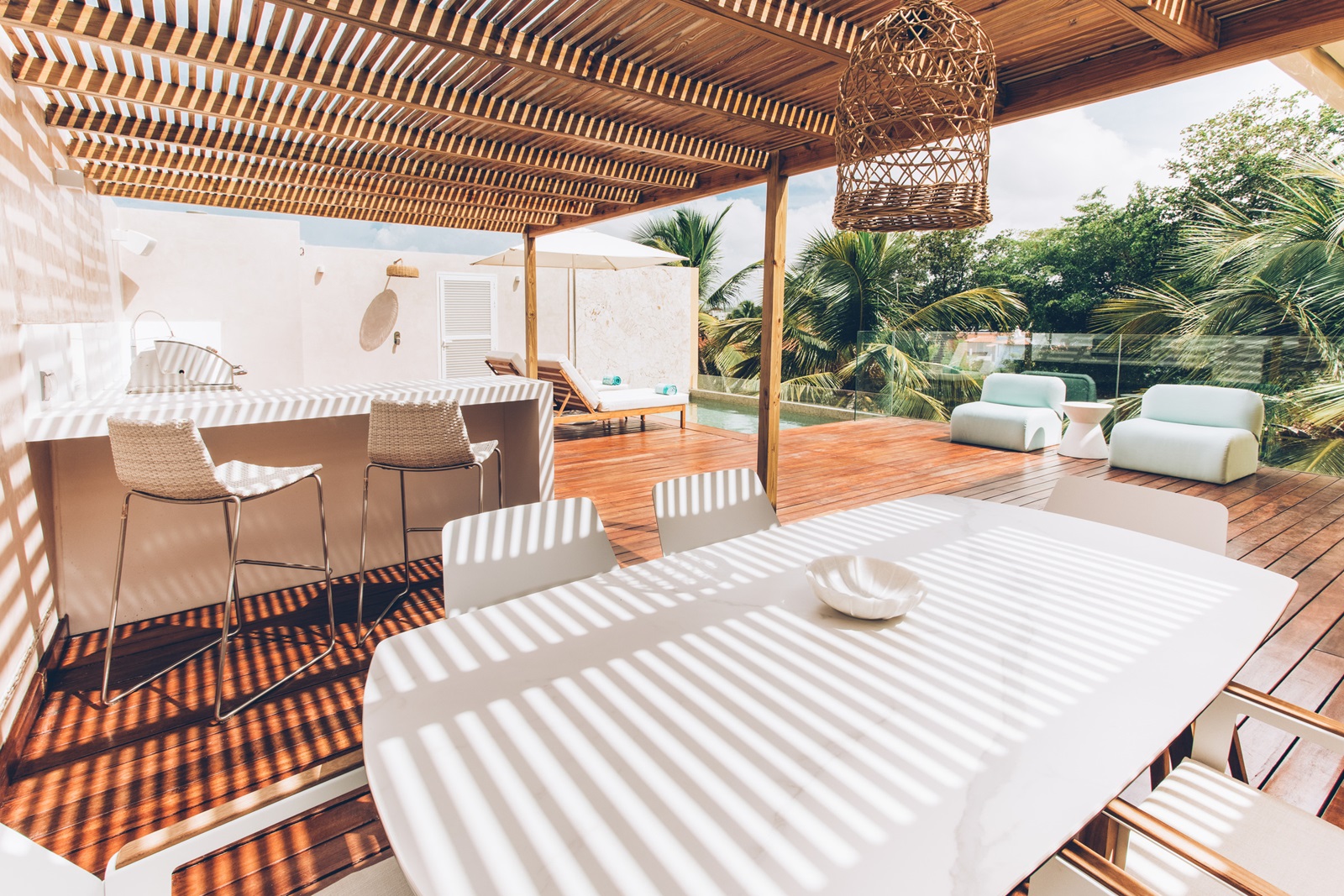 duplex suites private pool Pool (82 m²) (sur demande) situées près de la plage avec kitchenette, salon/salle à manger, chambre à coucher séparée et terrasse avec piscine privée