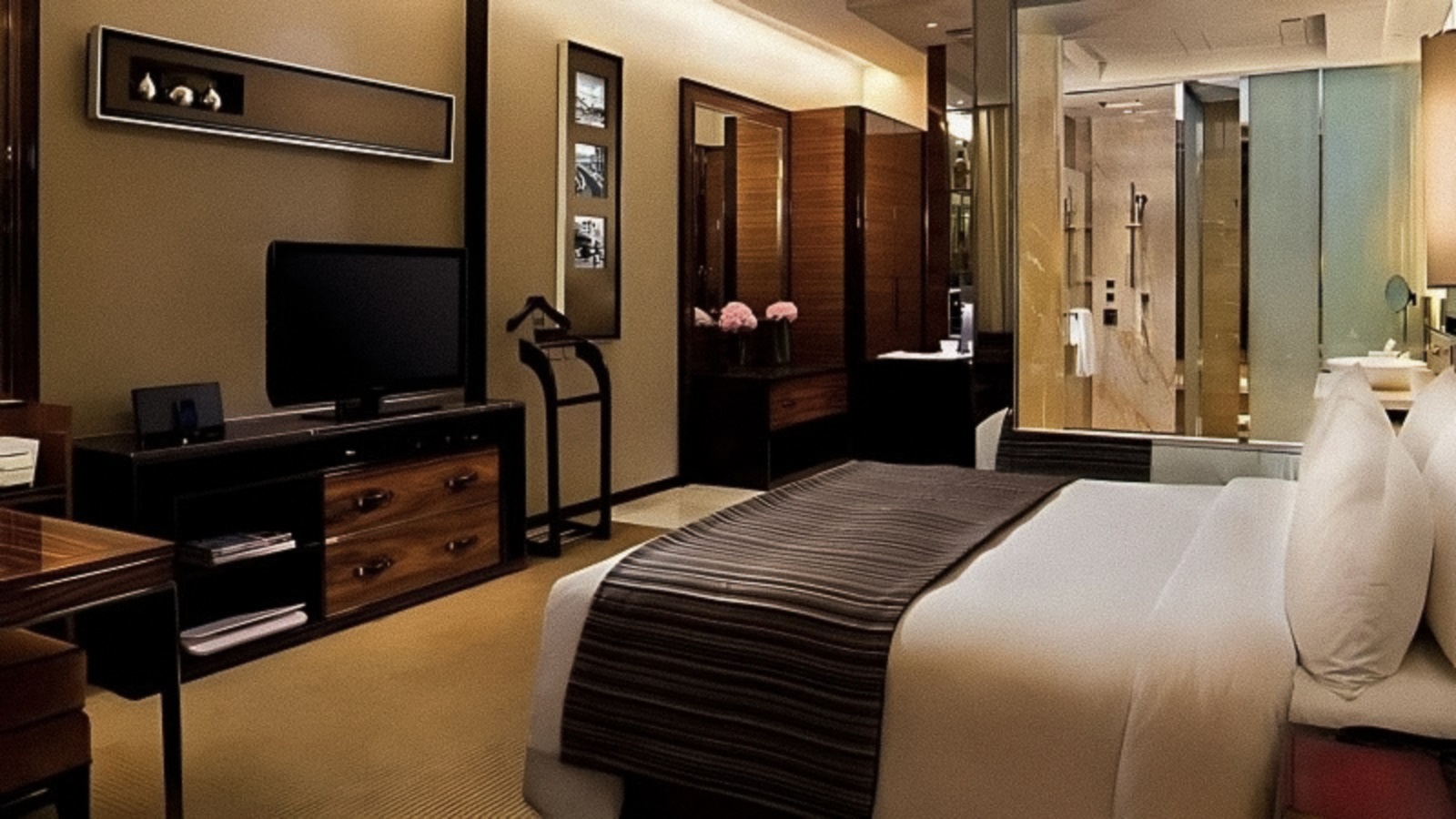 toutes les chambres sont décorées avec un mélange d'élégance moderne et d'éléments asiatiques classiques et disposent de fenêtres à hauteur de plafond, une belle salle de bains (bain, douche, sèche-cheveux), bureau, téléphone, TV à écran plat, enceintes Bluetooth Harman Kardon, appareil Nespresso®, coffre-fort, minibar (€), climatisation, wifi (gratuit) et balcon