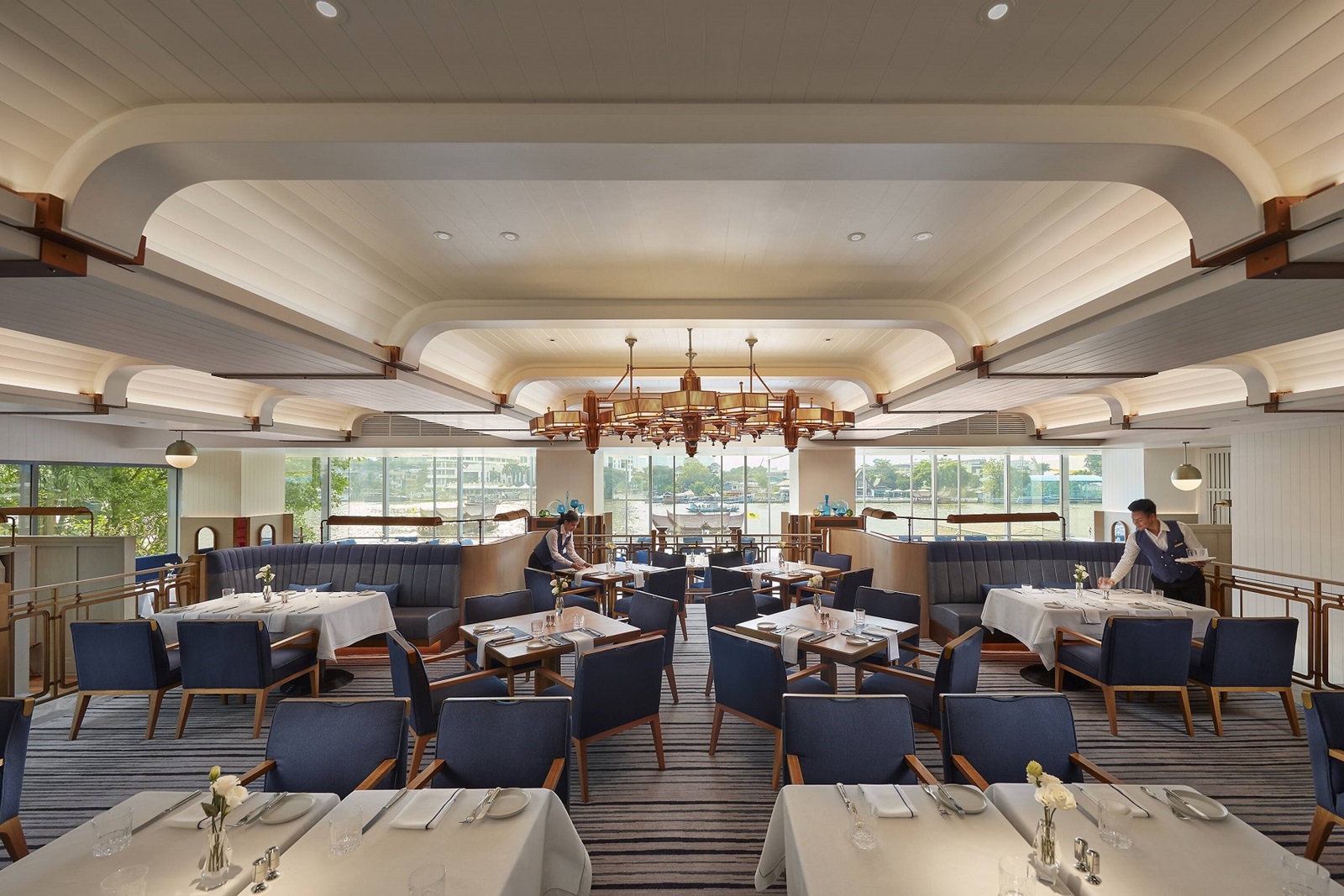 9 restaurants à la carte : The Verandah (international), Le Normandie by Alain Roux (cuisine française), Lord Jim's (fruits de mer & grillades), Kinu by Takagi (cuisine japonaise), Riverside Terrase (bbq), Ciao Terrazza (cuisine italienne) , Terrace Rim Naam (cuisine thaïlandaise), Sala Rim Naam (cuisine thaïlandaise), The China House (cuisine chinoise)