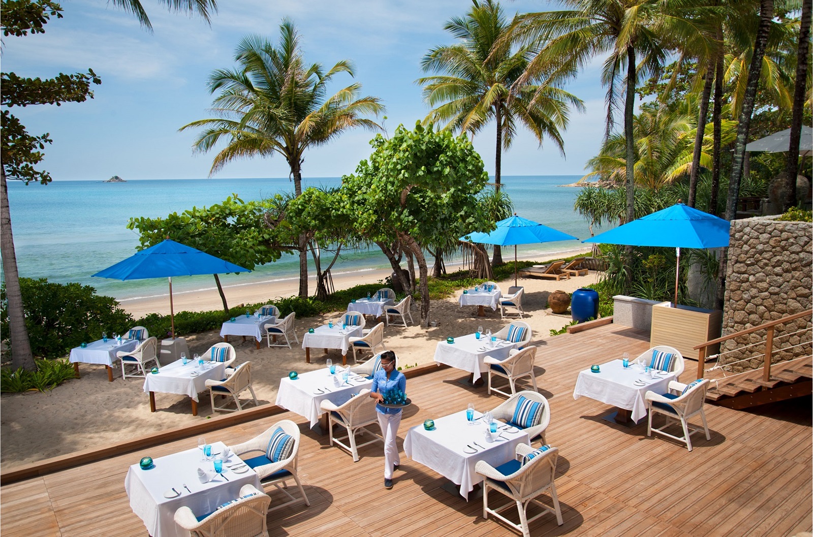 4 restaurants à la carte : Jampa (cuisine locale, zero waste), Cielo & Spice (international), Thai Library (cuisine thaïe) & La Crique (cuisine française)