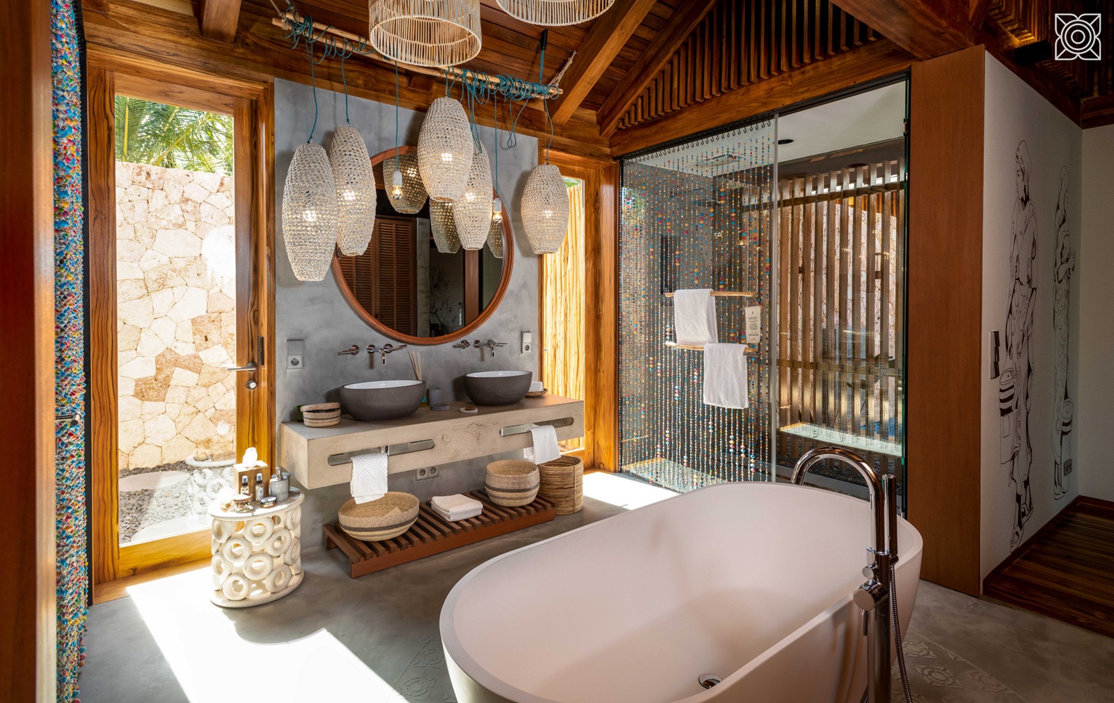 tous les bungalows, suites et villas, luxueusement aménages avec du mobilier contemporains et des éléments artisanaux locaux et d'œuvres d’art, disposent d’une douche ou bain, douche extérieure, sèche-cheveux, wifi, télévision à écran plat, percolateur à café et à thé, coin salon, coffre-fort, système de climatisation écologique 'Evening Breeze' et terrasse spacieuse