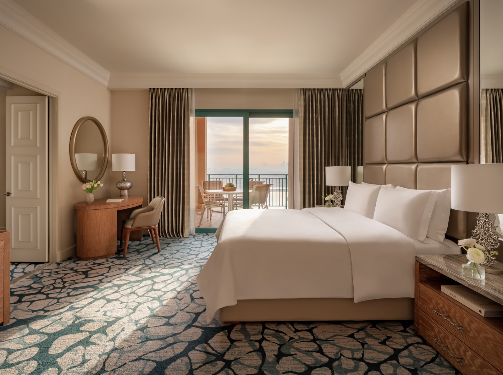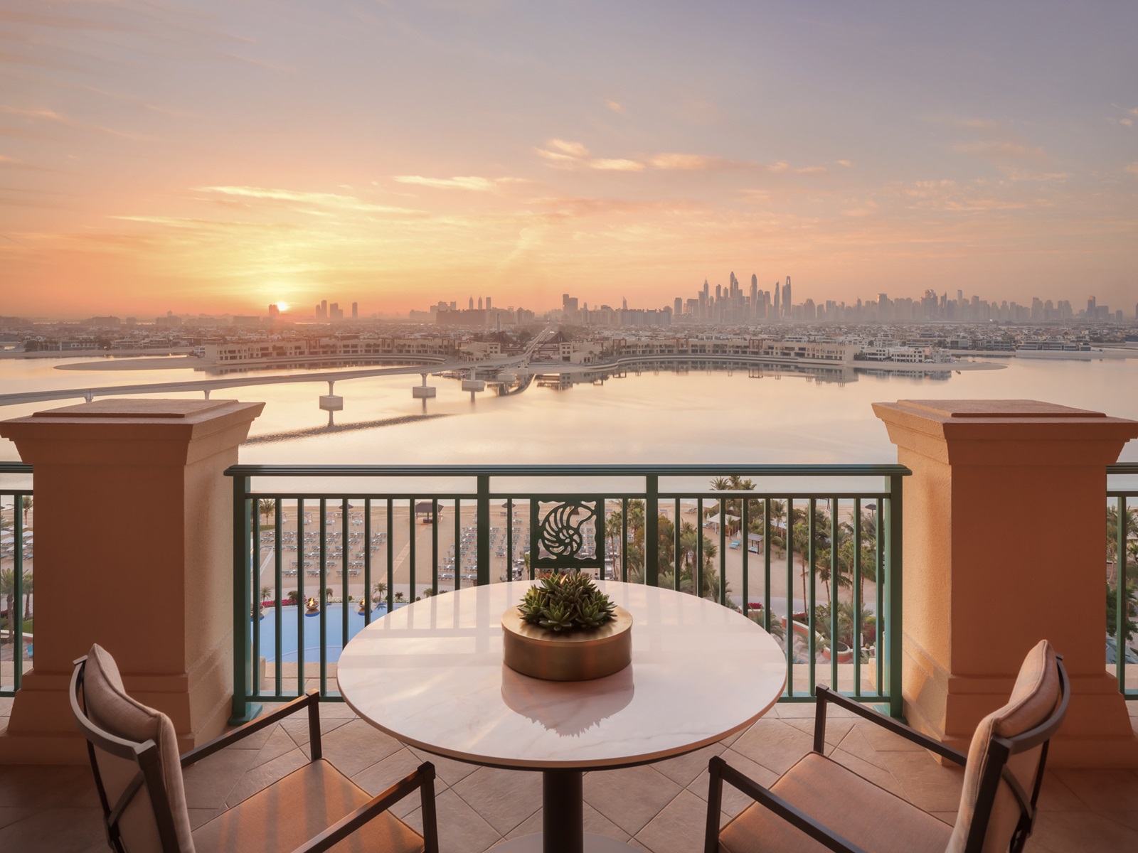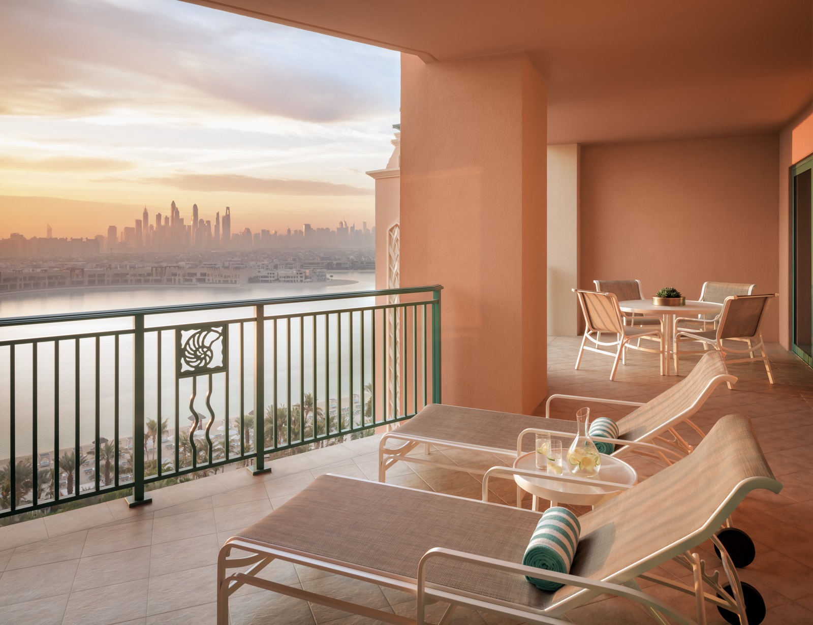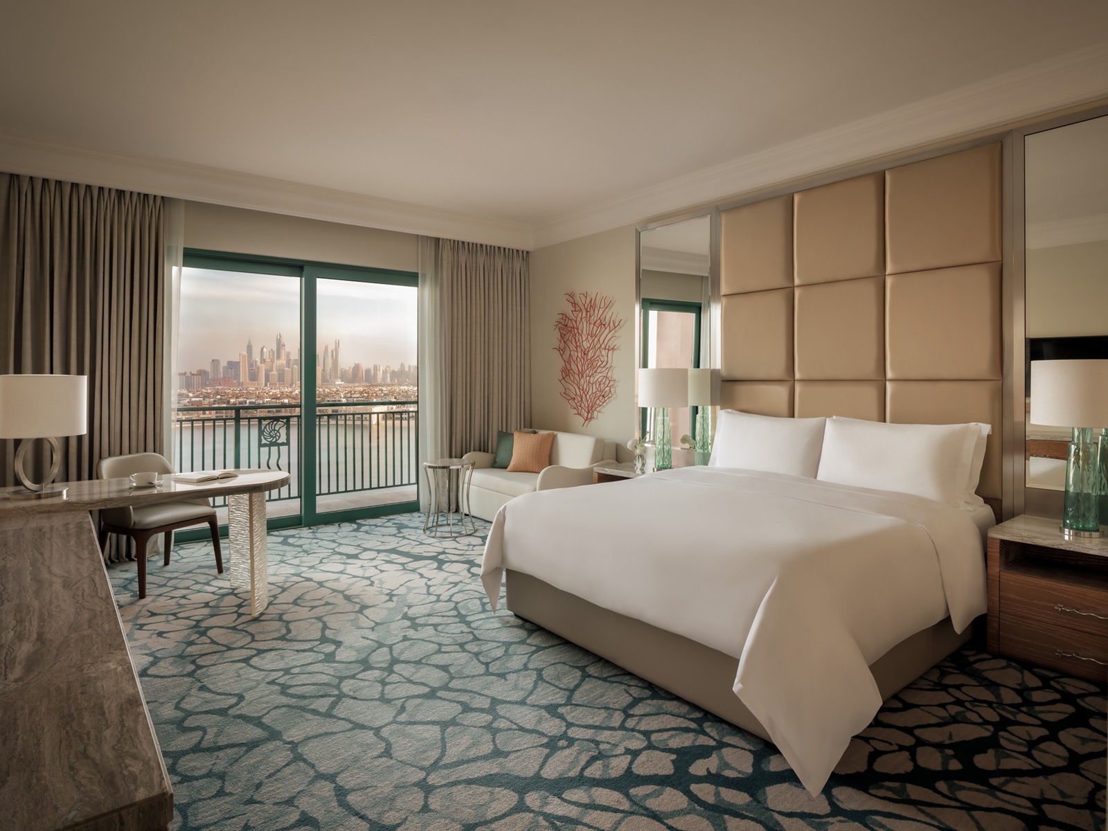 de Palm View kamers (45 m²) hebben zicht over de Palm en skyline van Dubai