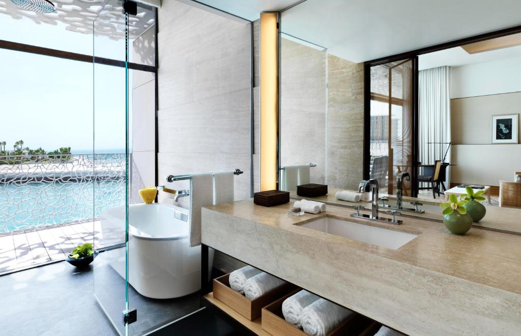 Dit exclusieve strandresort ligt op het schitterende Jumeirah Bay Island, een kunstmatig aangelegd zeepaard vormig eiland verbonden door een 300 m lange brug met Jumeirah Beach en op slechts 10 minuten van hartje Downtown. Het bestaat uit het hotelresort (met kamers, suites en exclusieve villa’s) en de Bvlgari Marina met residenties en een exclusieve Yacht Club! De grootste troeven zijn ongetwijfeld de enorm gepersonaliseerde service, de ruime keuze uit kamers, suites of unieke villa’s met privé zwembad, de fantastische Bvlgari Spa en de hoog aangeschreven gastronomie in onder meer het restaurant Il Ristorante olv de Italiaanse 3* chef Niko Romito. Geniet van de geslaagde mengeling van traditioneel design in combinatie met de schitterende Italiaanse hedendaagse architectuur en inrichting.
