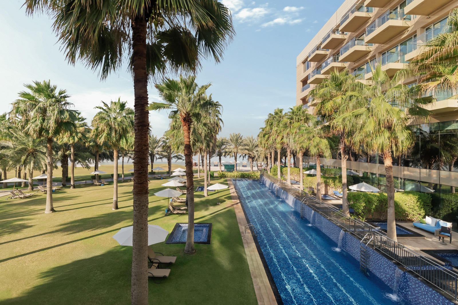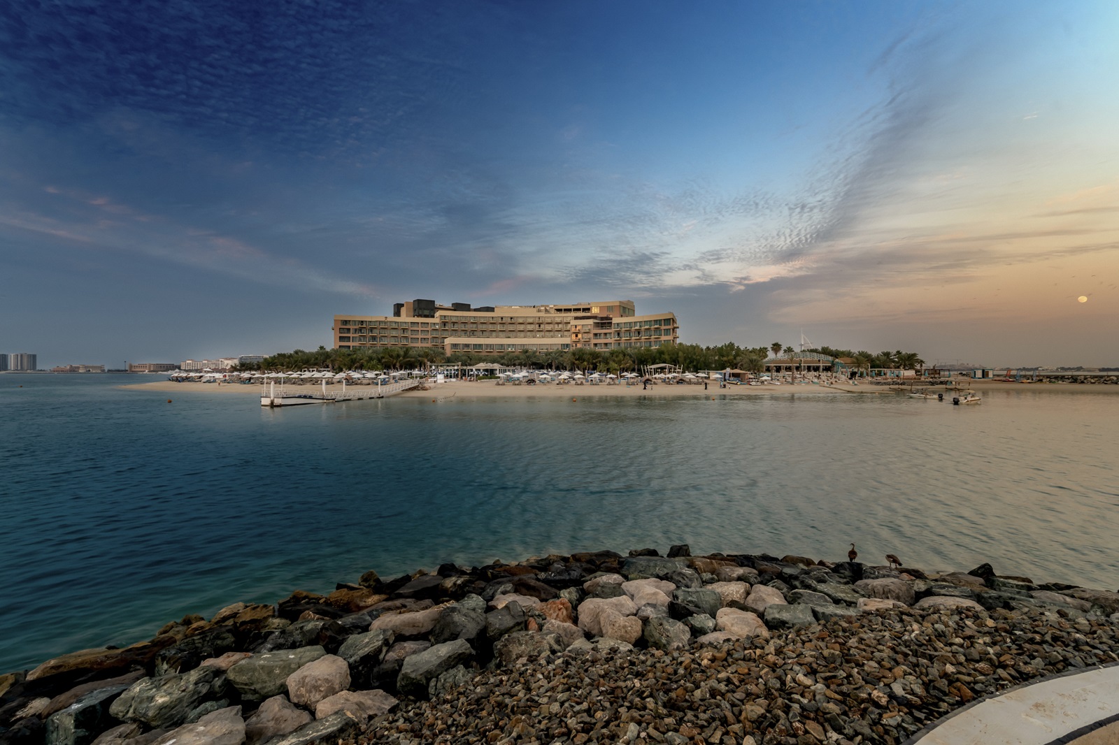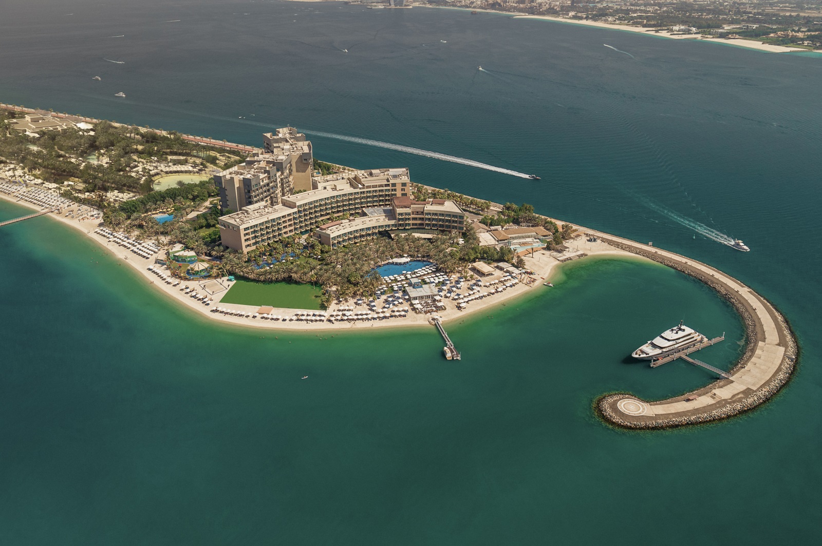 Het aangename resort Rixos The Palm Dubai Hotel & Suites ligt op het einde van het oostelijke Palmgedeelte en bevindt zich aan een 1 km lang privé zandstrand. Het biedt talloze ontspannings- en watersportmogelijkheden en behoort tot één van de meest kindvriendelijke hotels maar biedt tevens een ruime keuze aan kamers: van Wellness kamers voor volwassenen tot 1-5 slaapkamers suites waarvan sommigen met privé zwembad. De grootste troef van het hotel is ongetwijfeld de uiterst complete Ultra All Inclusive formule!
