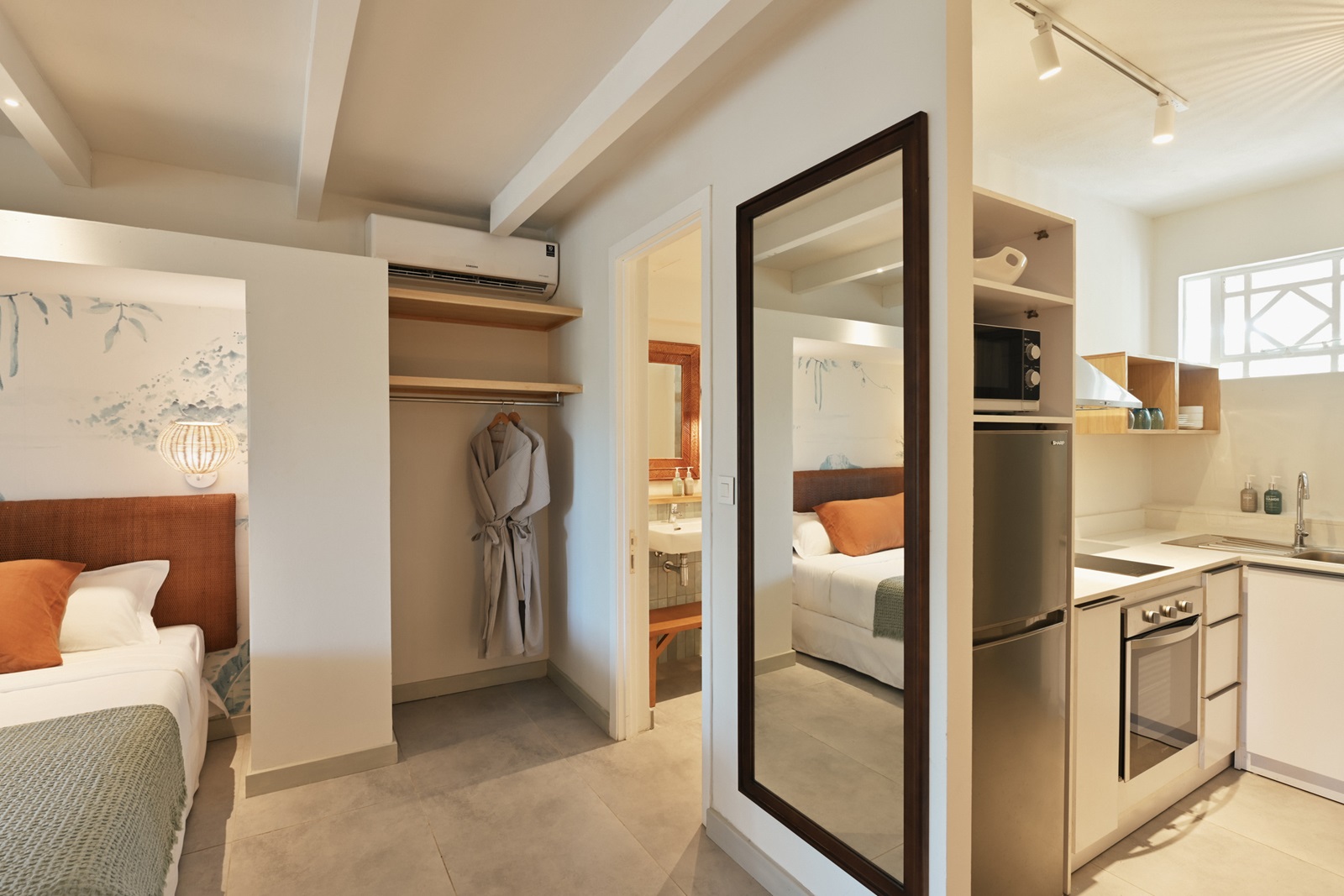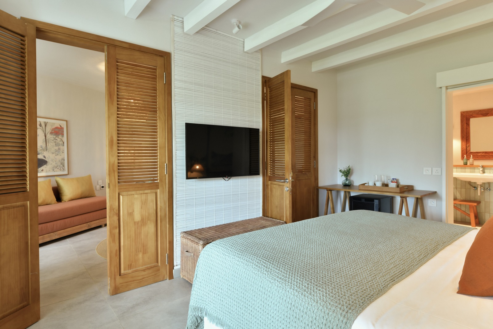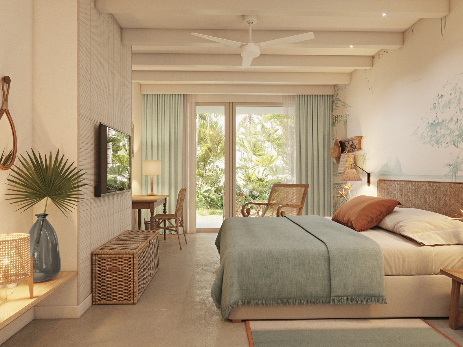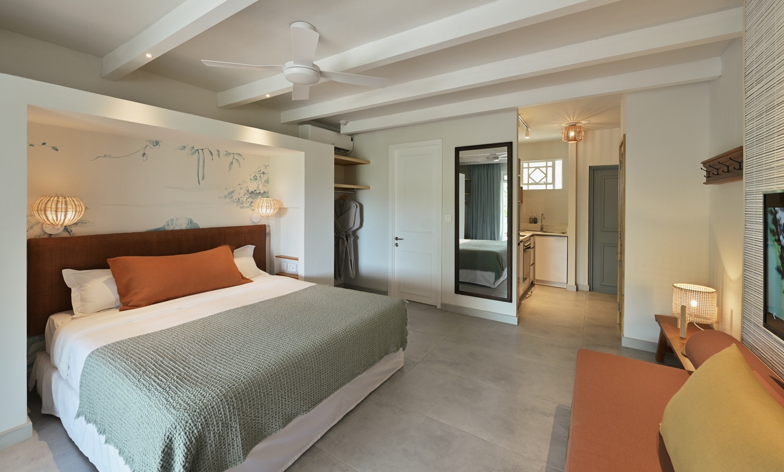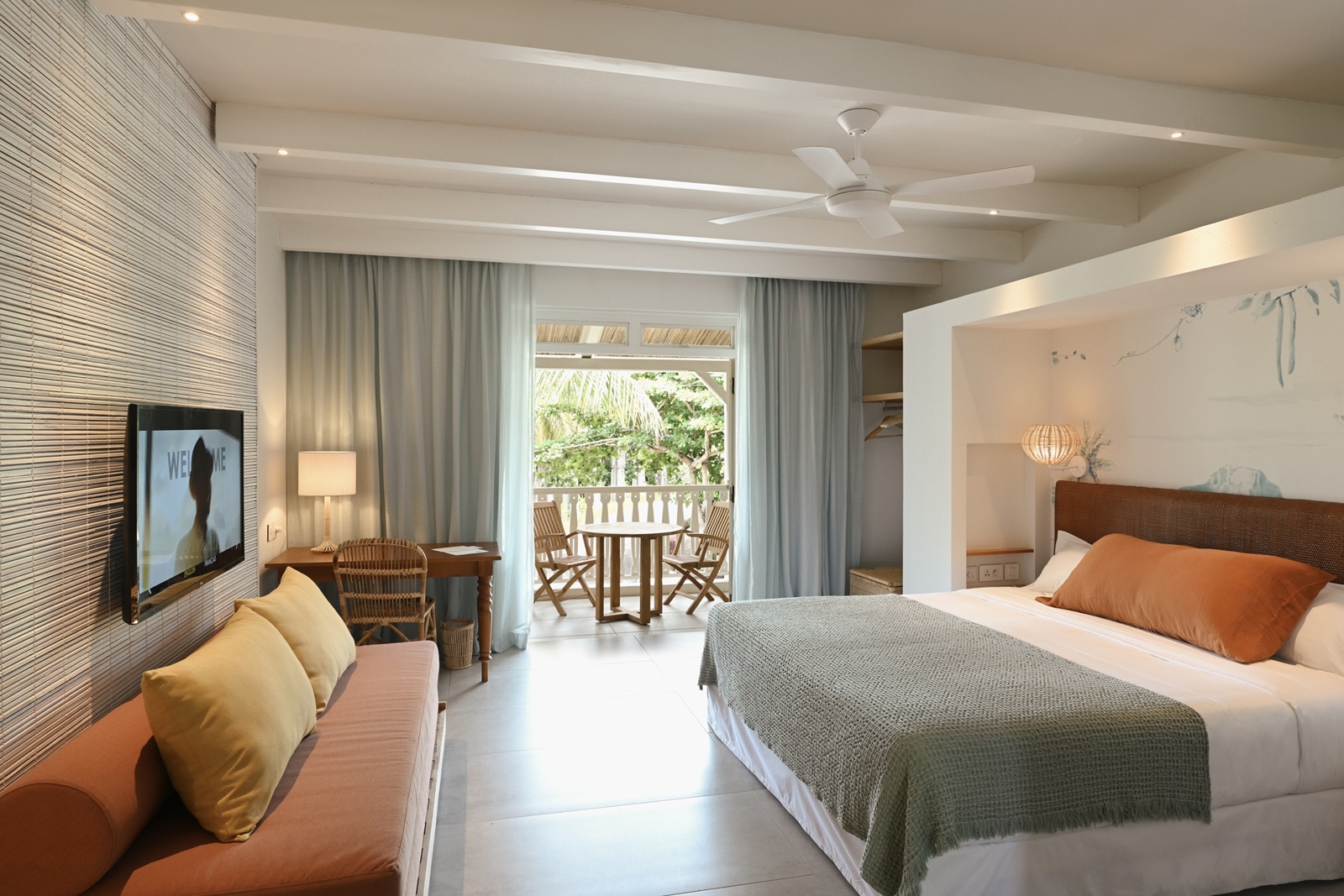 alle kamers zijn ondergebracht in verschillende créoolse gebouwen verspreid in de tuin en hebben een hedendaagse en strakke inrichting en beschikken over badkamer met inloopdouche, haardroger, badjas en slippers, dressing, airconditioning, kluisje, flatscreen-tv, telefoon, wifi, minibar (€), koffie- en theefaciliteiten, tegelvloer en balkon of terras