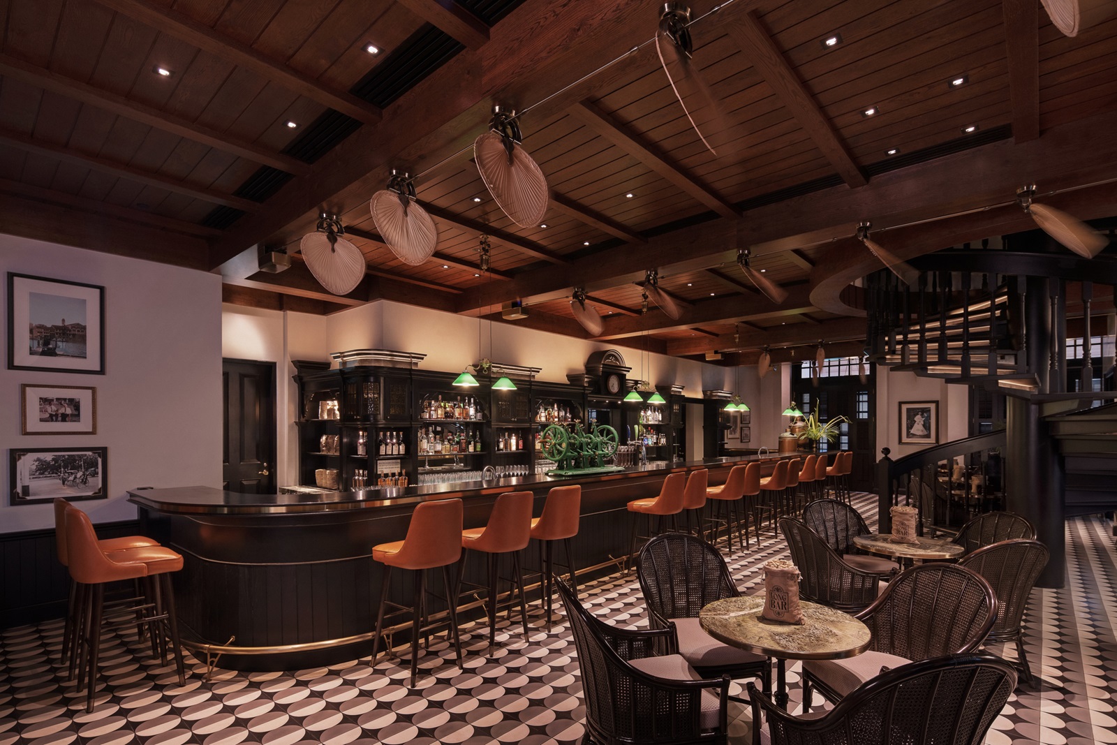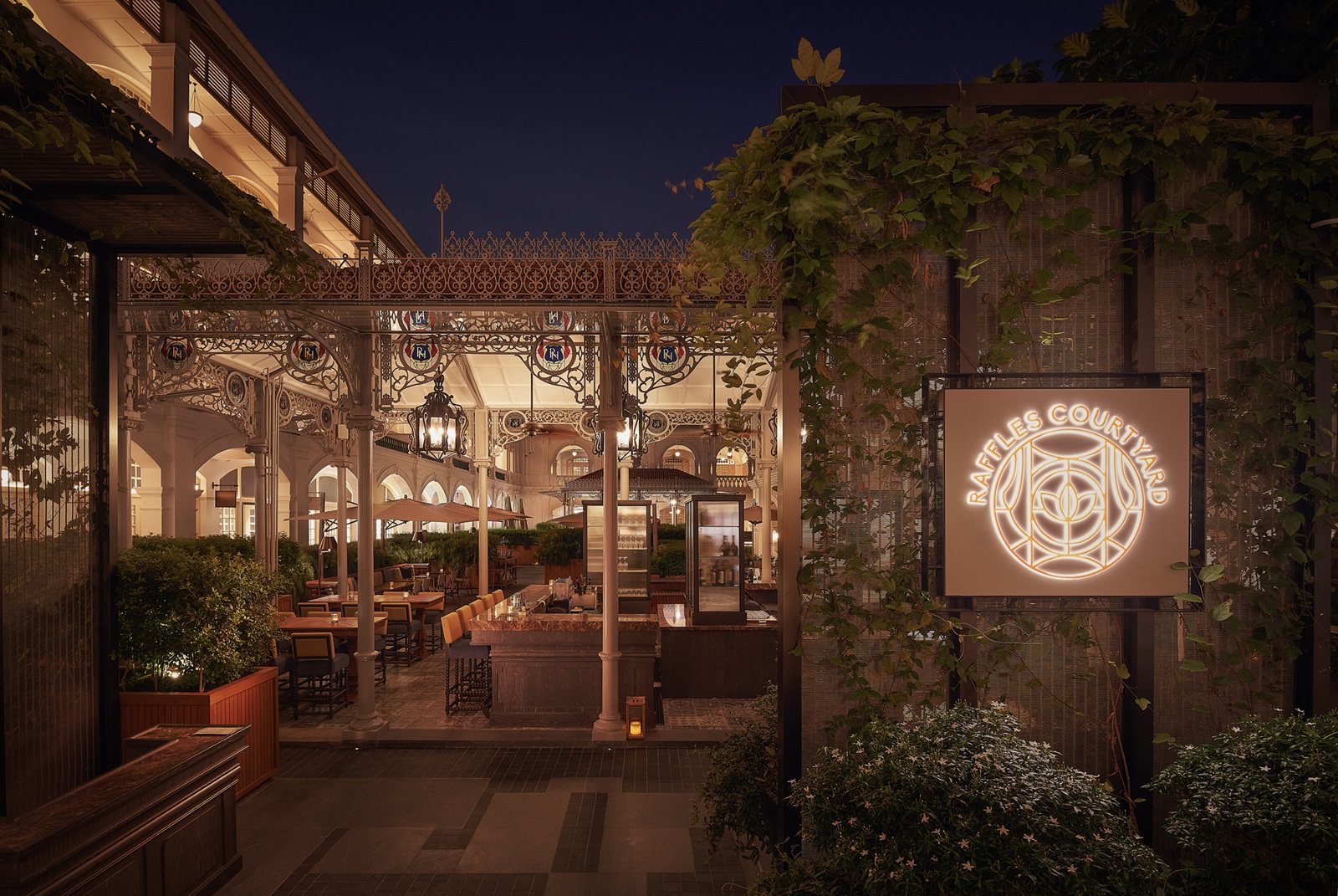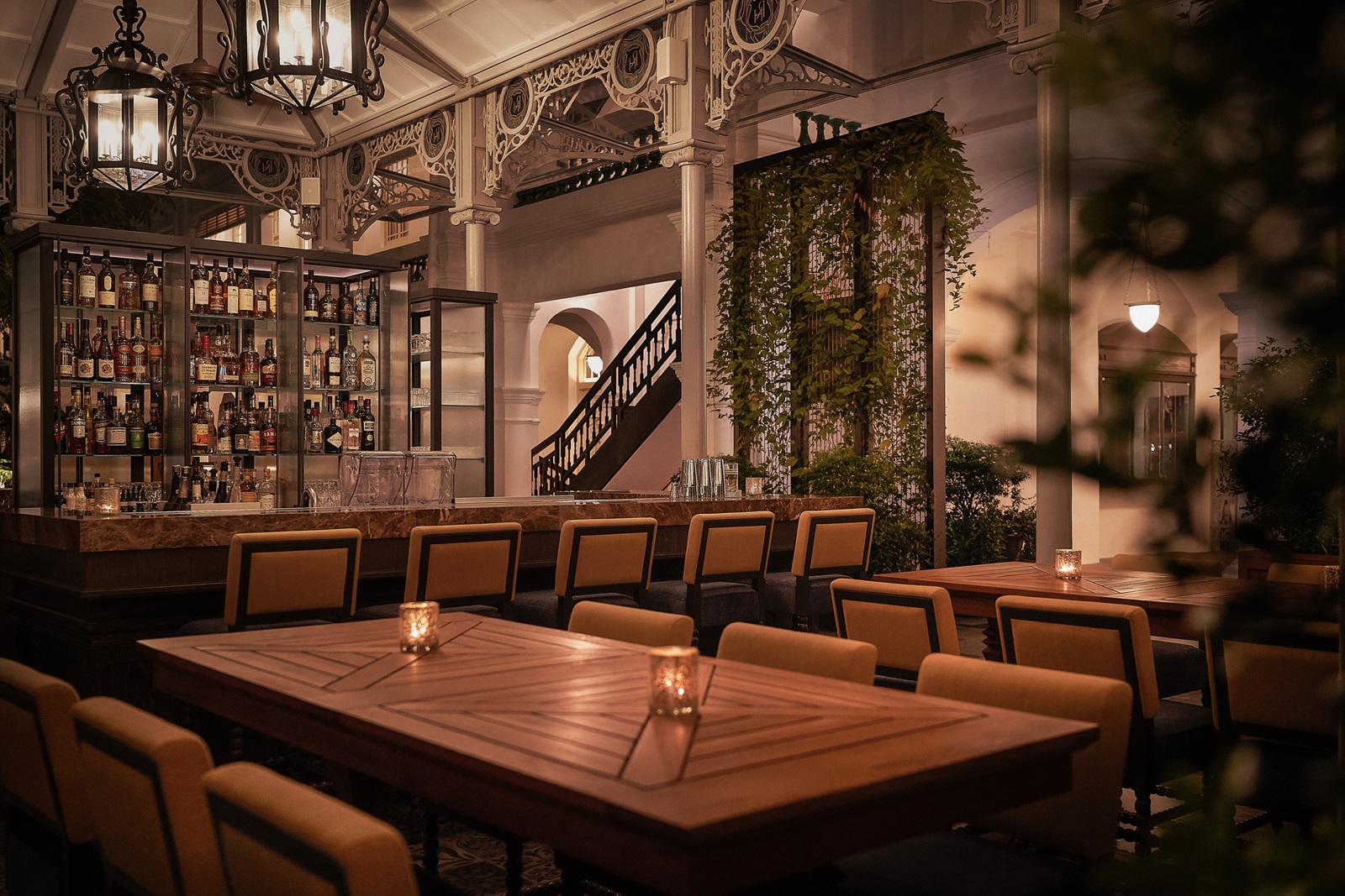 bars : ‘Long Bar’ op twee niveaus (bakermat van de Singapore Sling-cocktail), ‘Writers Bar’ (eerbetoon aan de vele schrijvers die hier hebben gelogeerd, vanaf 18 jaar) en ‘Raffles Courtyard’ in openlucht (cocktails en hapjes van Zuid-Oost Aziatische oorsprong)