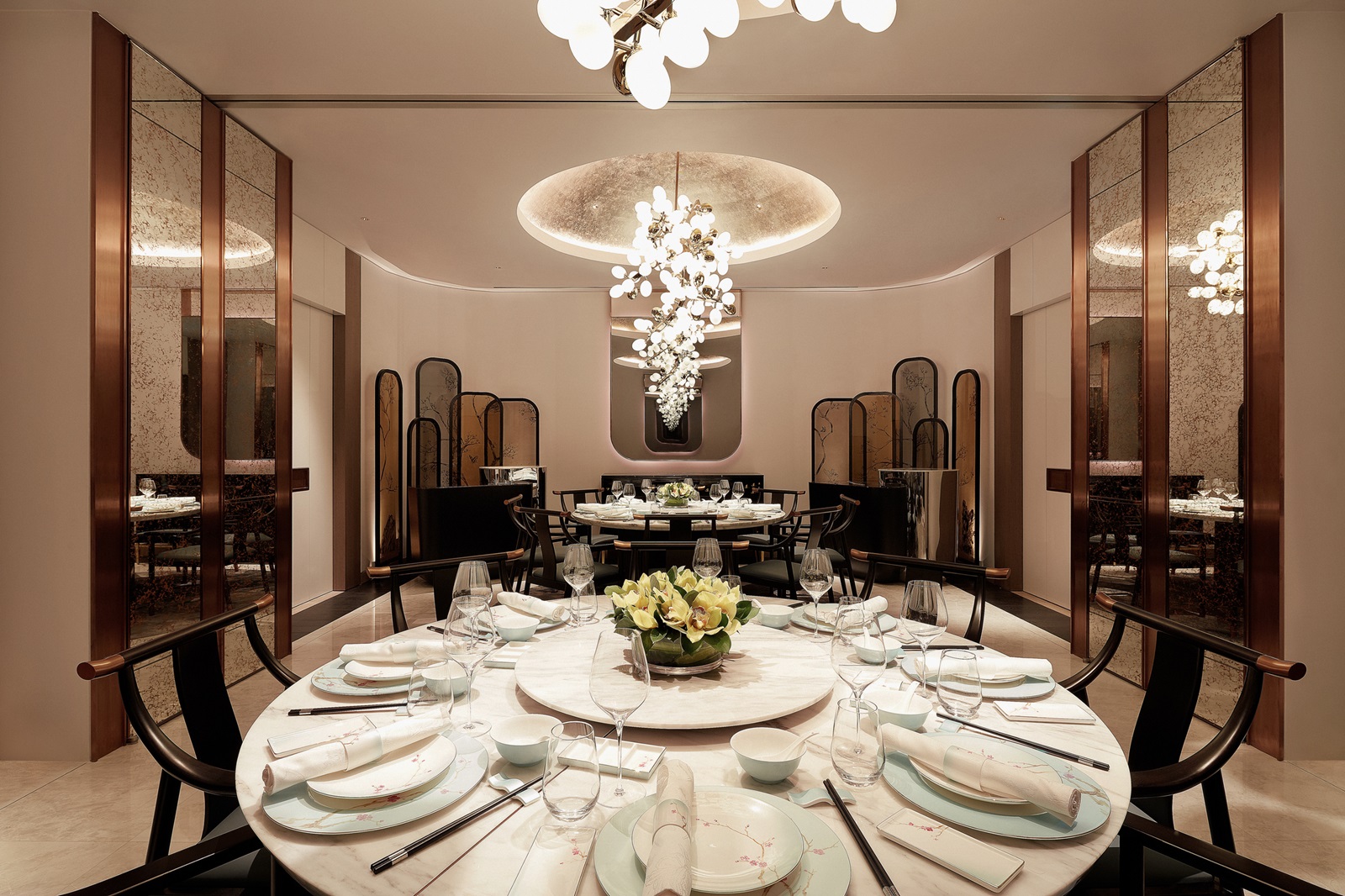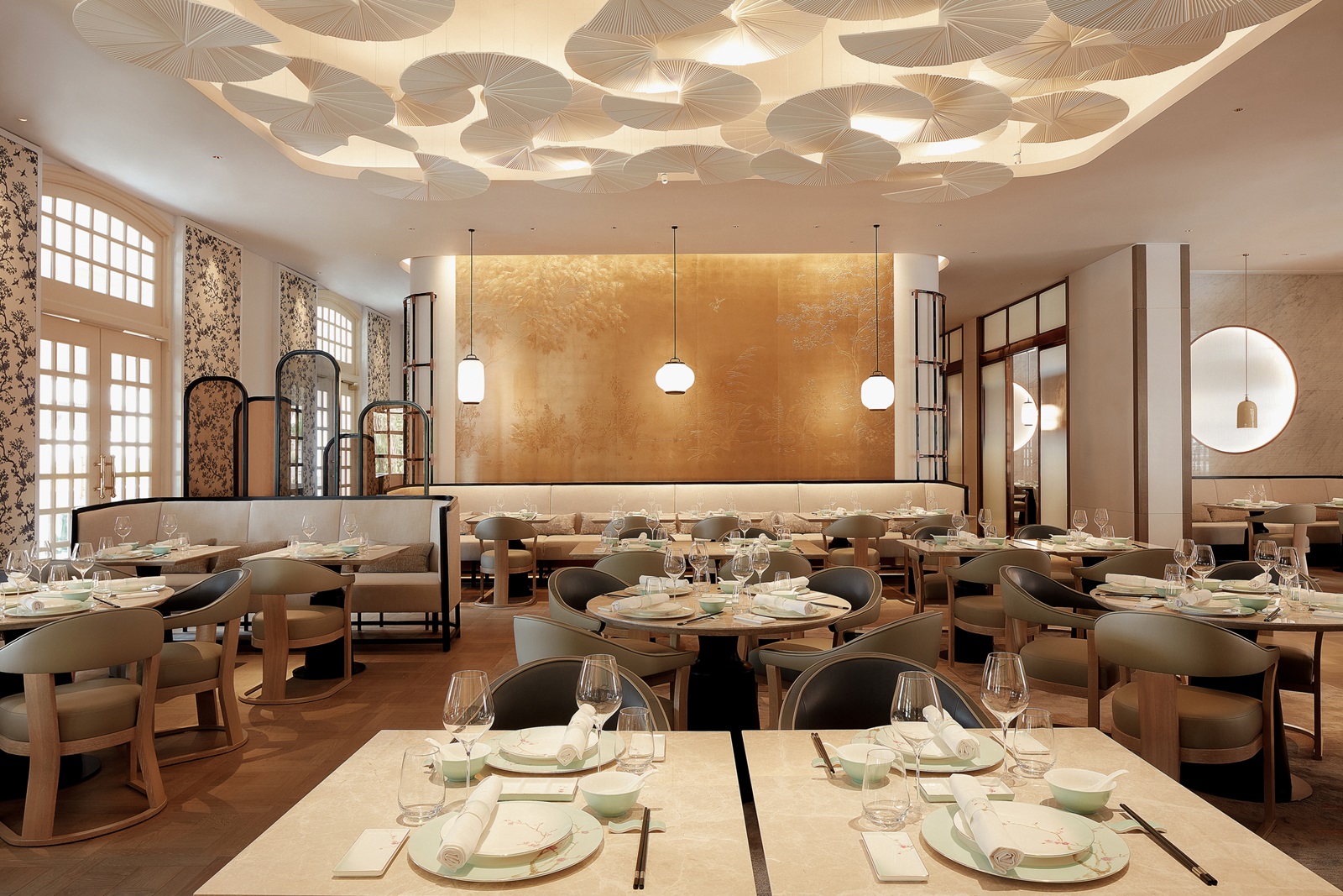 4 à-la-carterestaurants: ‘The Grand Lobby’ (authentieke keuken, diner), ‘Butcher’s Block’ (houtoven grill, diner), ‘Tiffin Room’ (Noord-Indische keuken, lunch en diner), ‘藝 yì by Jereme Leung’ (moderne Chinese keuken, lunch en diner)