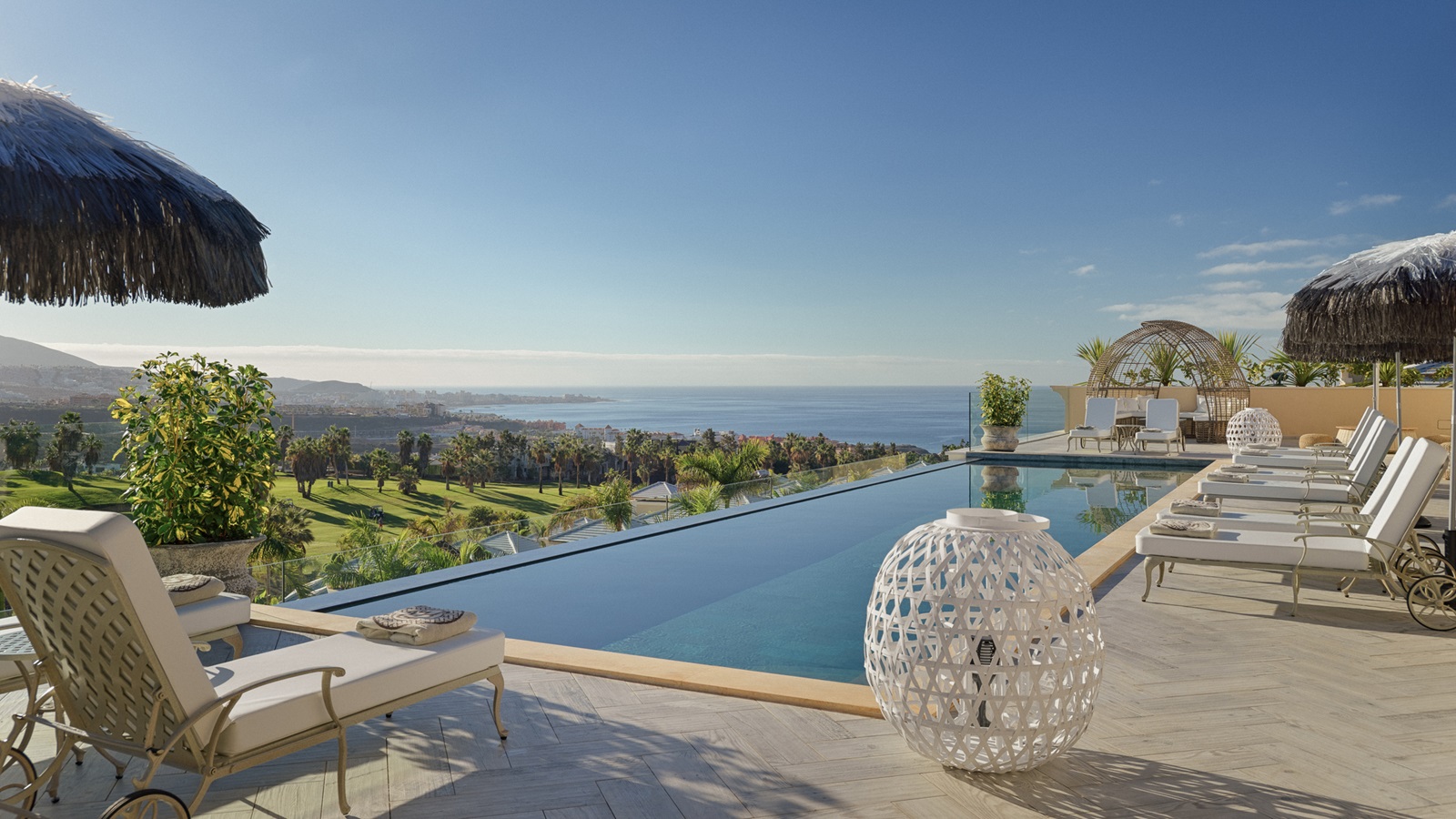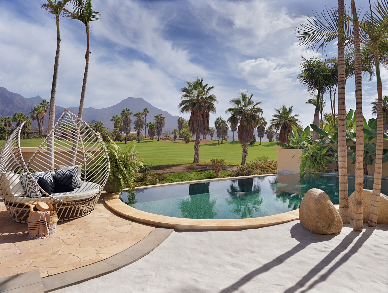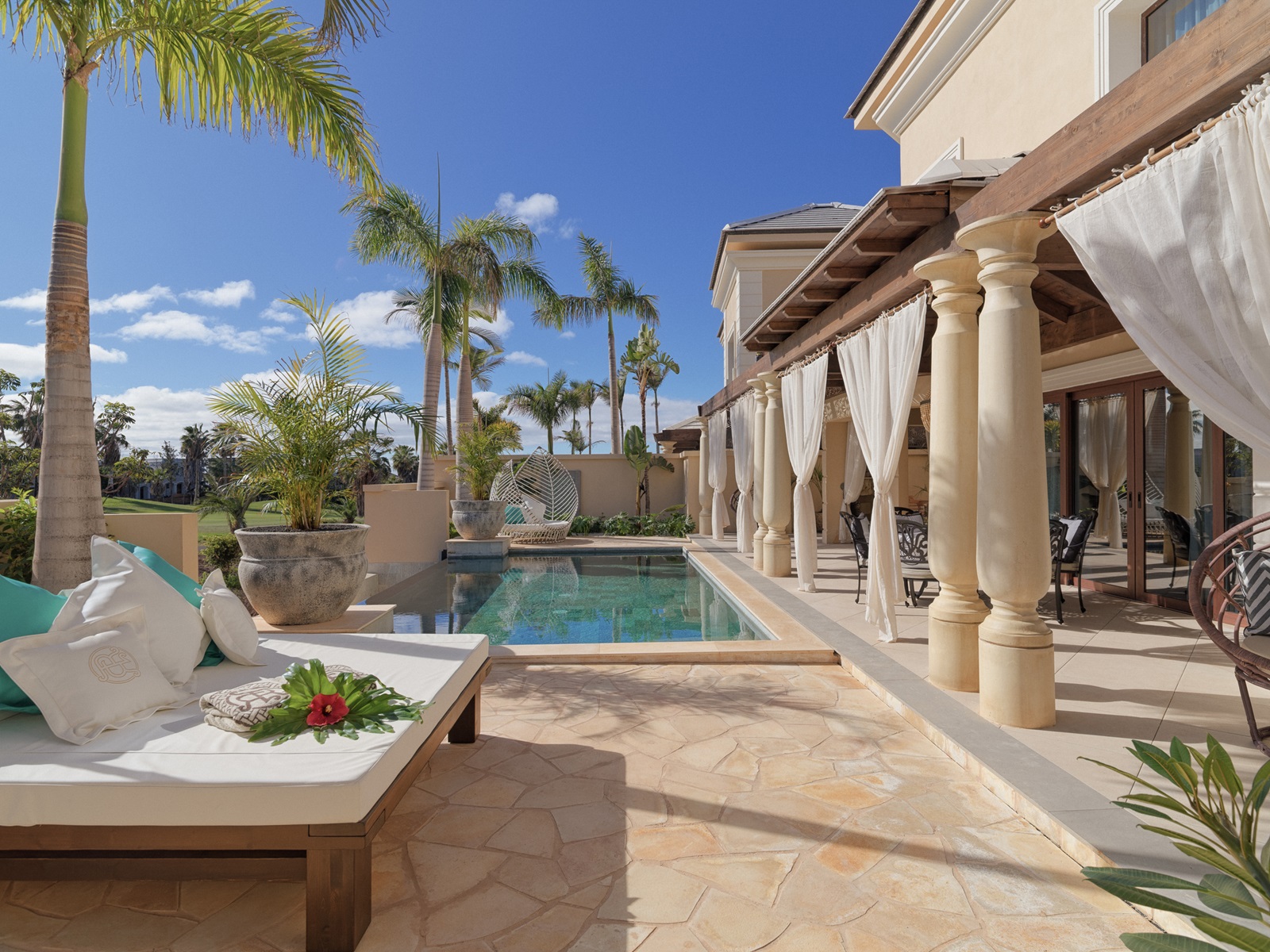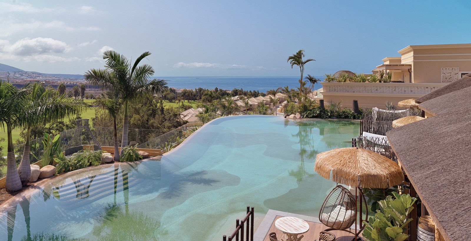 Het luxe hotel Royal River Luxury Hotel in Costa Adeje, Tenerife blinkt uit door zijn stijlvolle architectuur en unieke verblijfservaring. Dit adults-only hotel bestaat uit ruime villa’s die ontworpen zijn met oog voor detail en privacy, elk met toegang tot een rivier of met privézwembad. Hoogtepunt is het dakterras met infinity pool en bar, vanwaar u uitkijkt over de Atlantische Oceaan. De architectuur ademt natuurlijke harmonie, met warme houtaccenten en Balinese invloeden. Geniet van verfijnde gastronomie in een van de vier restaurants, waaronder een Franse bistro en een Aziatisch geïnspireerd concept. De spa biedt ruimte voor ontspanning, met behandelingen die lichaam en geest in balans brengen. Dankzij de intieme sfeer, persoonlijke service en hoogwaardige faciliteiten, is Royal River de ideale keuze voor wie comfort en rust waardeert.