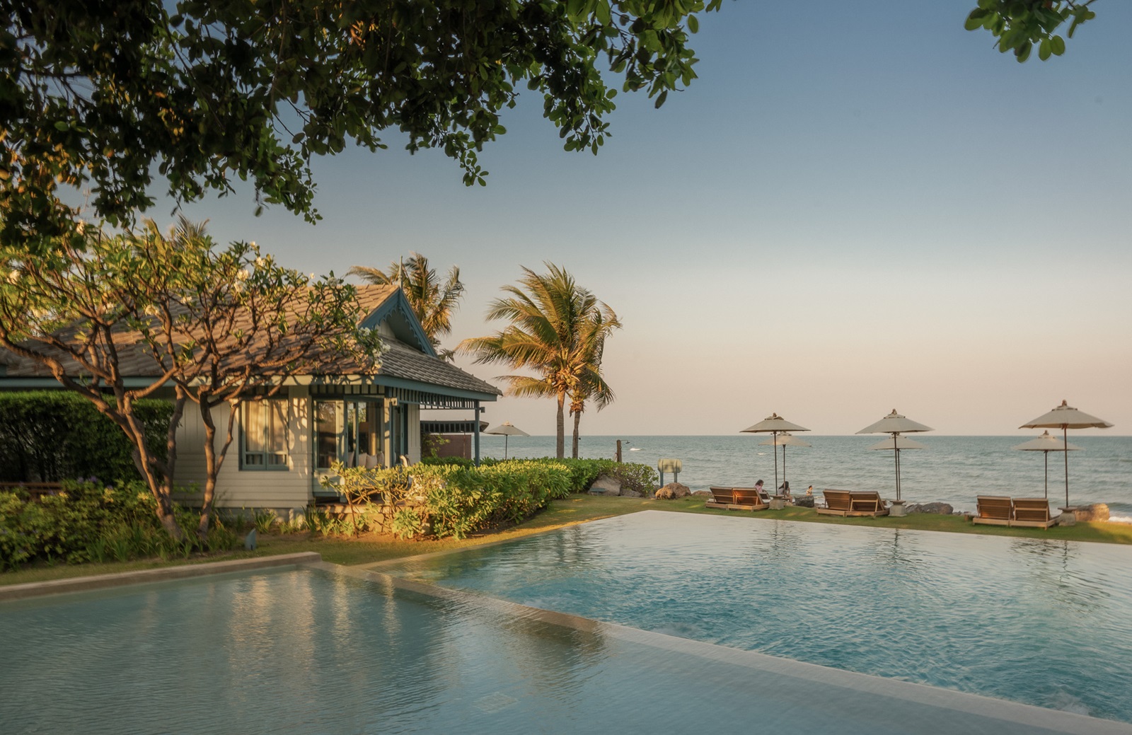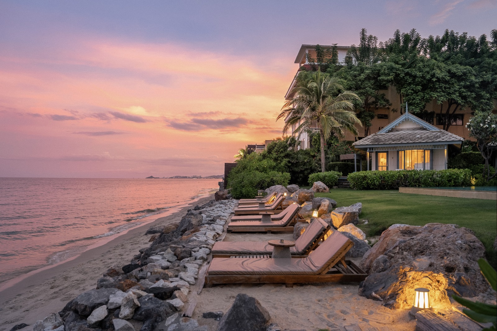 Het luxueuze Devasom Hua Hin Resort is een bekroond boutiquehotel, rustig gelegen aan een privéstrand tussen Hua Hin en Cha-am in Thailand. Dit elegante vijfsterrenresort telt slechts 23 kamers en villa’s en ademt de romantische sfeer van het klassieke Hua Hin uit de Siamese periode. De architectuur en het interieur zijn geïnspireerd op historische strandhuizen en combineren nostalgische charme met hedendaags comfort. Vanuit elke kamer geniet u van een panoramisch zeezicht, terwijl het infinityzwembad, de tropische tuin en het verfijnde restaurant zorgen voor een ontspannen, intieme vakantiebeleving. Dankzij de persoonlijke service, de serene ligging en de dagelijkse shuttles naar Hua Hin is Devasom Hua Hin Resort de ideale keuze voor koppels en levensgenieters die op zoek zijn naar rust, elegantie en authenticiteit aan zee.