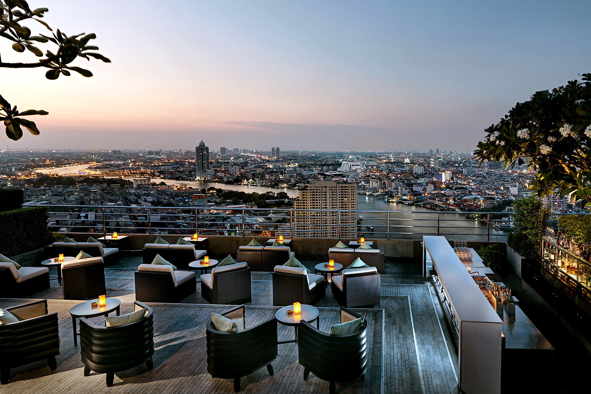 bar 'ThreeSixty' (jazz lounge en lounge in openlucht op het dak van de 32ste verdieping)