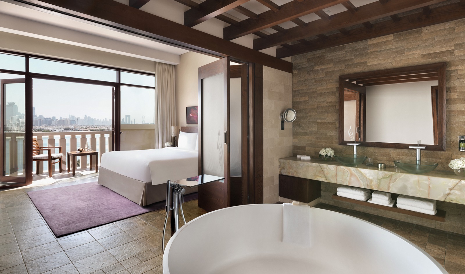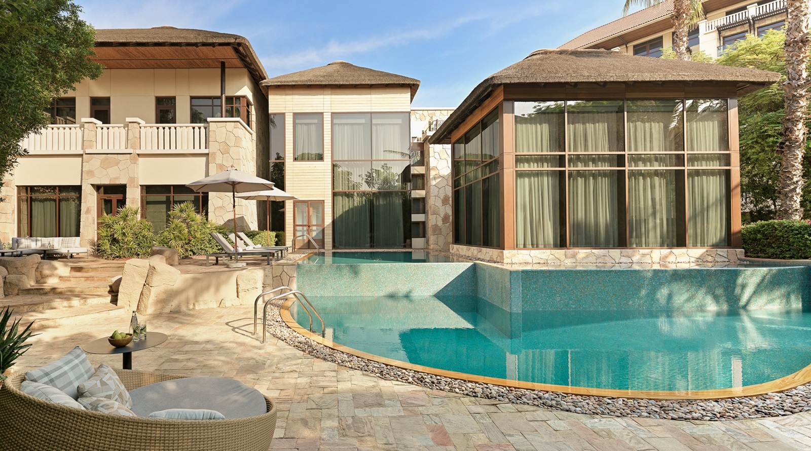 Het luxueuze hotel Sofitel Dubai The Palm ligt op de iconische Palm Jumeirah in Dubai en biedt een unieke mix van Franse elegantie en Polynesische charme. Dit vijfsterrenresort beschikt over een lang privéstrand, zes zwembaden en weelderige tuinen met tropisch karakter. Gasten hebben keuze uit zeven restaurants en vijf bars, variërend van mediterrane en Aziatische fusion tot verfijnde Franse patisserie. Voor ultieme ontspanning is er de ‘Sofitel Spa by L’Occitane’ met een uitgebreid aanbod aan massages en behandelingen. Voor kinderen is er de ‘Amura Kids Club’ met verschillende activiteiten. Een absolute aanrader voor koppels zijn de Signature Palm Suites, exclusieve suites met butlerservice en toegang tot de Premier Lounge. Kortom, een ideale bestemming voor zowel families als koppels om in alle luxe te genieten van Dubai.